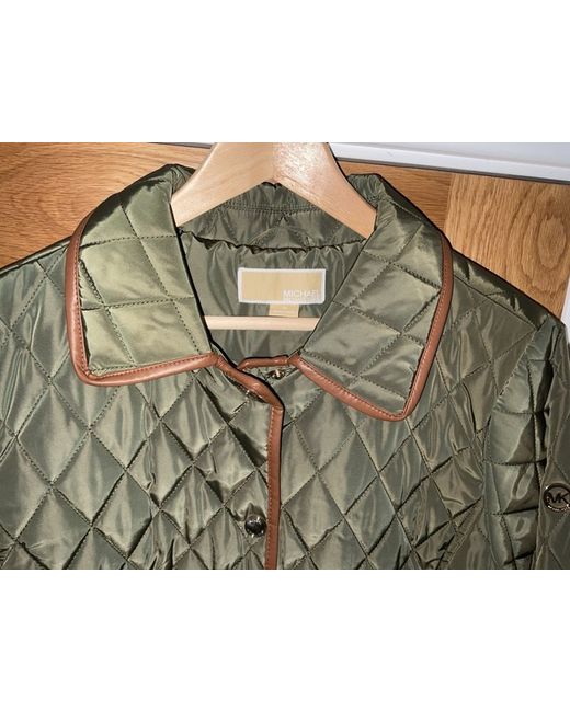 Brand new never worn Olive Green Micheal Kors quilted jacket. States size OX I was size 16 when purchased in June. As usual I took the tags off and placed in wardrobe ready to wear, but due to weight loss the coat is far too big for me now. Popper buttons to front with 2 zipped side pockets, 2 vents to the back, slightly fitted. Absolutely lovely classic colour.