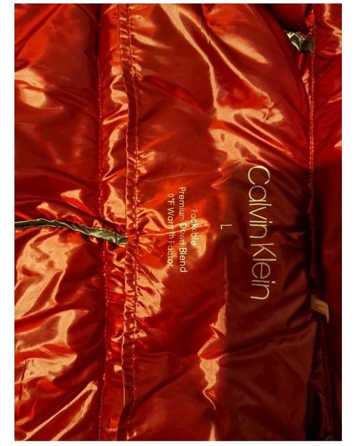 Calvin Klein Womens Zip front packable down puffer coat hooded Red L 12/14 New Lightweight coat