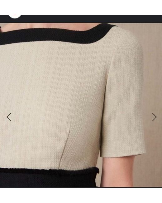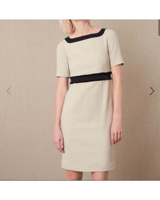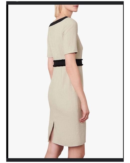 Channel sophistication on smart occasions with this cotton-rich shift dress from Jaeger. It's cut in a figure-enhancing fitted shape and falls to a classic knee length. A touch of stretch in the boucle fabric provides ultra-comfortable wear. A stylish twist comes courtesy of the frayed edge waistband and contrast square neck. Short sleeves and a zip closure at the back deliver a neat finish
