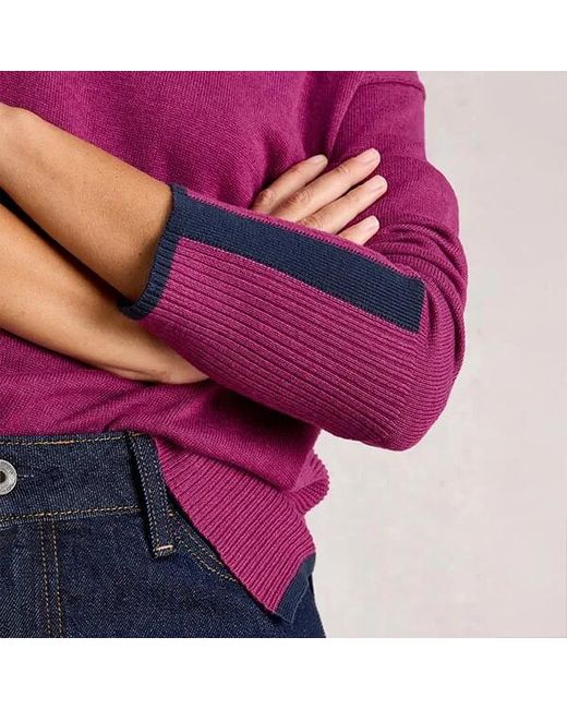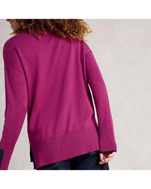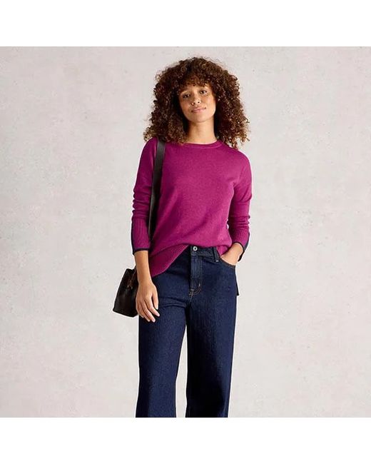 The White Stuff Olive Jumper in Dark Plum is designed to be a mid-weight and warming option, with a regular fit through the body that is ideal for layering in the colder weather. Its deep purple shade adds a splash of autumnal colour to your outfit.