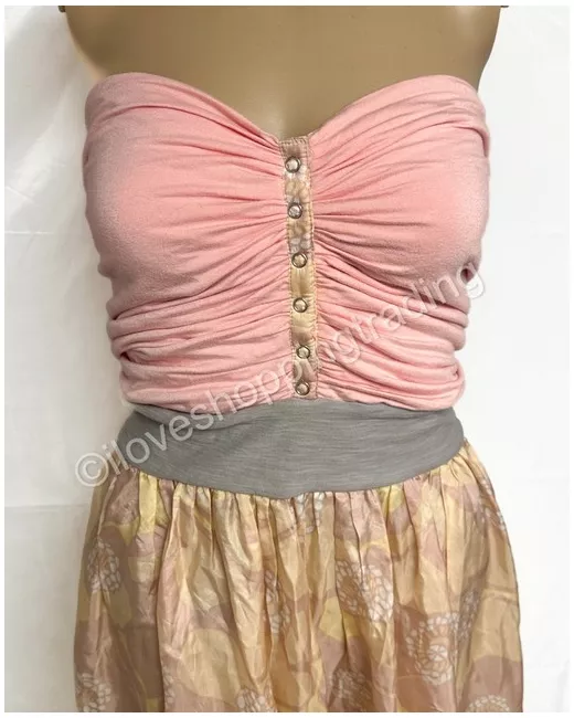 This stunning Marc Jacobs slip-on dress features a flattering A-line silhouette with a soft pink jersey bandeau-style top made from 100% cotton with sweetheart neckline, beautifully ruched at the centre and finished with delicate snap buttons down the front.