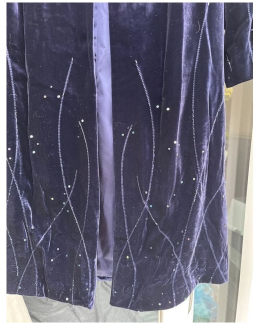 Beautiful velvet coat with sequins and beads navy with a hint of purple it says 14 but more a 12 and it has 1 hook to front