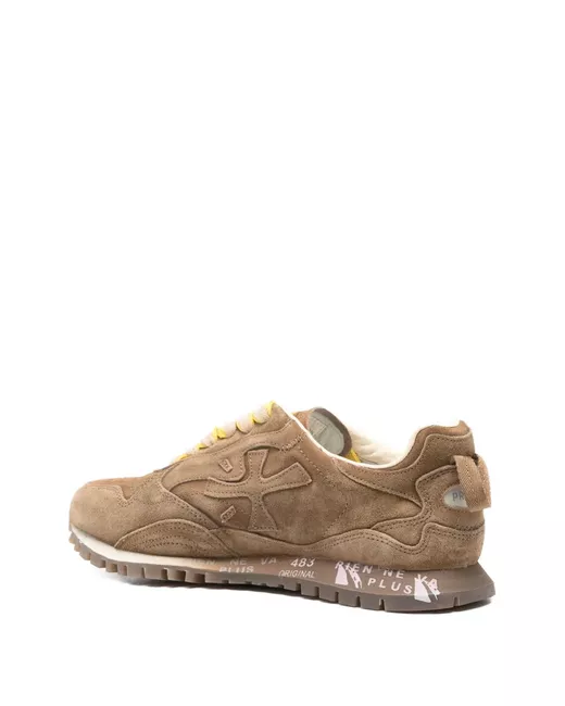 brown appliqué detail lace-up fastening pull-tab at the rear ridged rubber sole