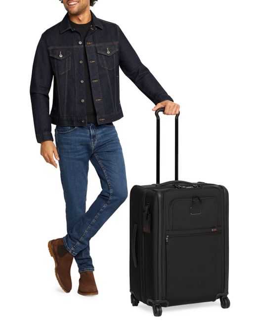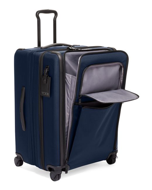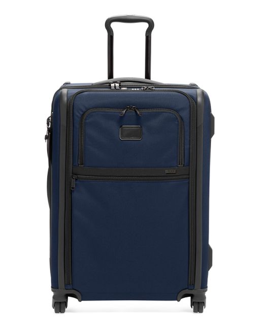 From the Alpha Collection. Experience the luxury of flexible packing with this versatile Tumi Short Trip suitcase equipped with an expandable main compartment. It brings together innovation, superior performance, and best-in-class functionality. Top handle Top three-stage telescoping handle Side and bottom grab handles Interior: removable garment sleeve with fiberglass rod, zip pocket on garment sleeve, hanger bracket, large mesh zip pocket, three zip pockets, compression straps, and Lever Lock two-stage expansion system Exterior: two U-zip pockets and one gusseted front straight-zip pocket Zip closure Four dual spinner wheels Built-in TSA combination lock Tumi tracer Ballistic nylon/leather Imported SIZE About 26"H x 19"W x 13"D Weight: about 15.5 lbs. Men Accessories - Tumi Imports > Tumi > Saks Fifth Avenue. TUMI. Color: Navy.