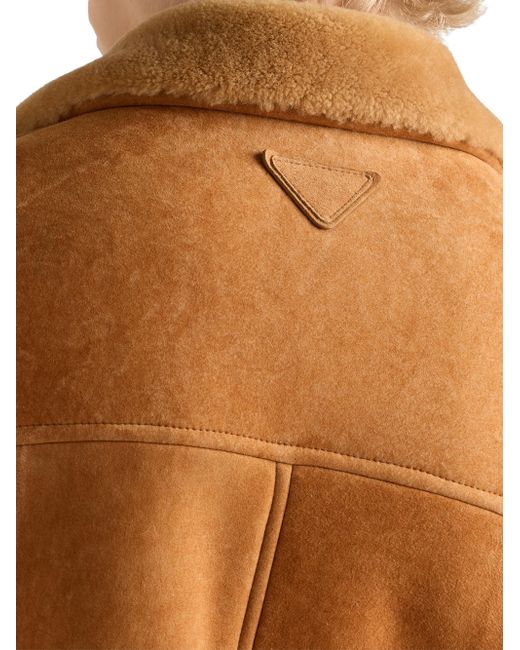 Leather triangle logo on the back Vintage treatment Imported 100% Ovis Aries Aries Fur Treatment: Dyed Fur origin: Spain Fur Type: Sheep. Lsd Rtw - Prada Rtw > Prada > Saks Fifth Avenue. Prada. Color: Brown. Size: 38.