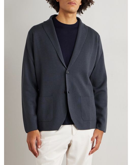Thom Sweeney's blazer is knitted from pure merino wool with roomy patch pockets at the front. It's less structured than traditional styles, so wear it like a cardigan with jeans and loafers.