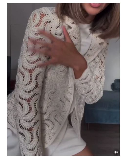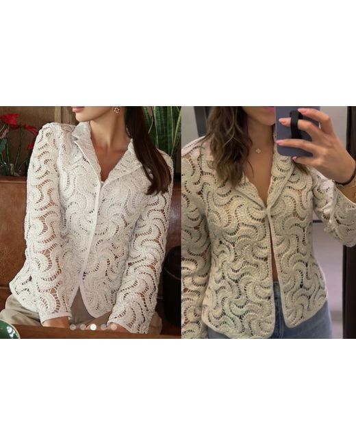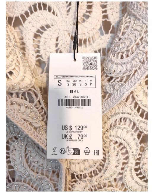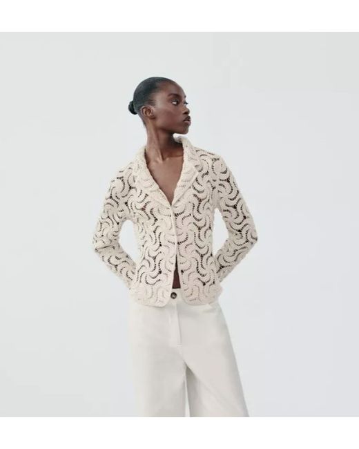 Zara Beaded Open Knit Blazer. Stylish light beige beaded open knit blazer from Zara. Length 21" (down centre back excluding collar). Material 72% cotton 28% polyester. Colour beige. Sleeve length 22.5".