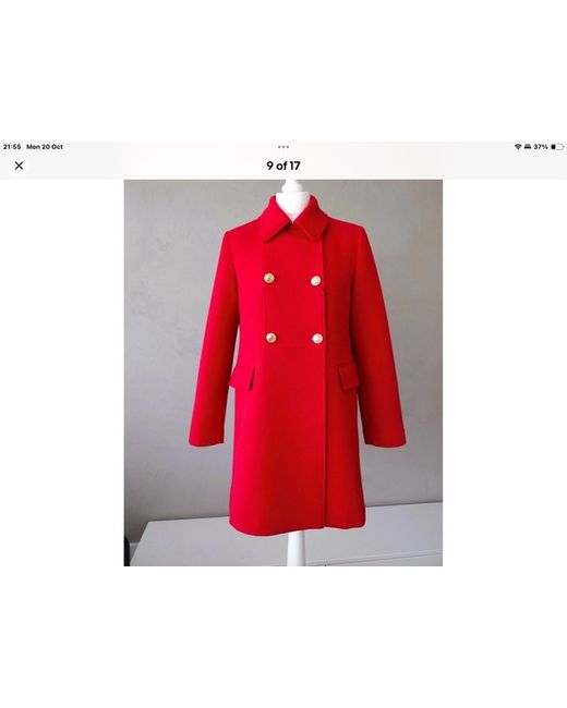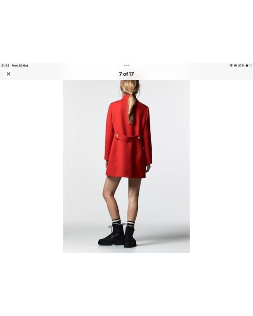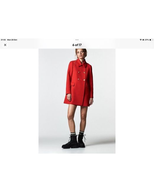 The Zara Woman New Buttoned Tailored Coat in size Large is a stylish and versatile mid-length coat designed for women. Made from a blend of polyester, viscose, and elastane, this coat features a classic pea coat style with a collared neckline and pockets for added convenience. The deep red colour adds a pop of vibrancy to any outfit, making it a stand-out piece for any wardrobe. Perfect for layering in the colder months, this coat combines fashion and functionality effortlessly.