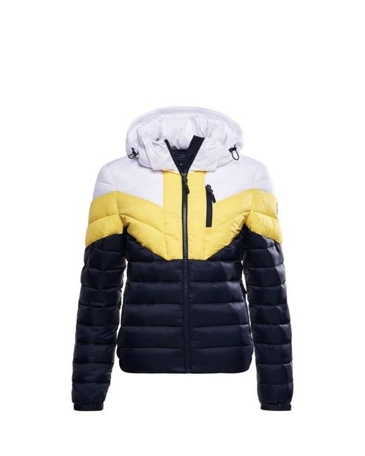 This winter, color your days with the COLOR BLOCK FUJI YELLOW / NAVY down jacket from the SUPERDRY brand. Its filling is made from recycled bottles to help protect the environment and the oceans. Very comfortable, it is daring and offers great freedom of movement. This eco-responsible jacket will follow you on all your adventures, both in the city and in the mountains. Product features : - 2 zipped pockets on the front - Detachable hood - Composition: 100% nylon - Filling: 100% recycled polyester