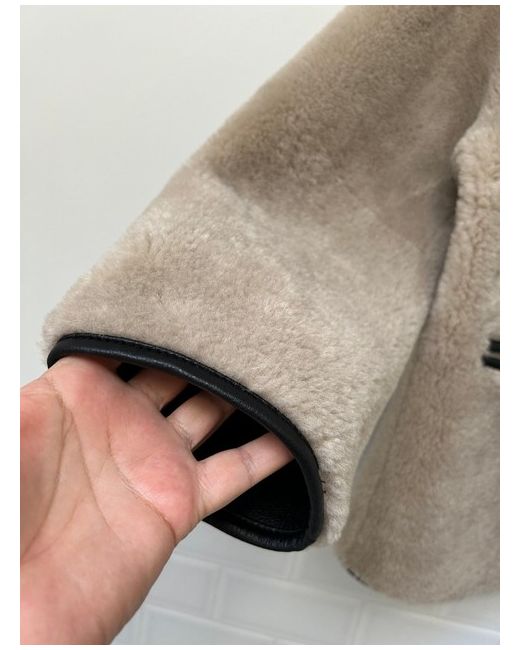 Women's Beige Faux Leather Shearling Toggle Collarless Jacket L UK12-14 199