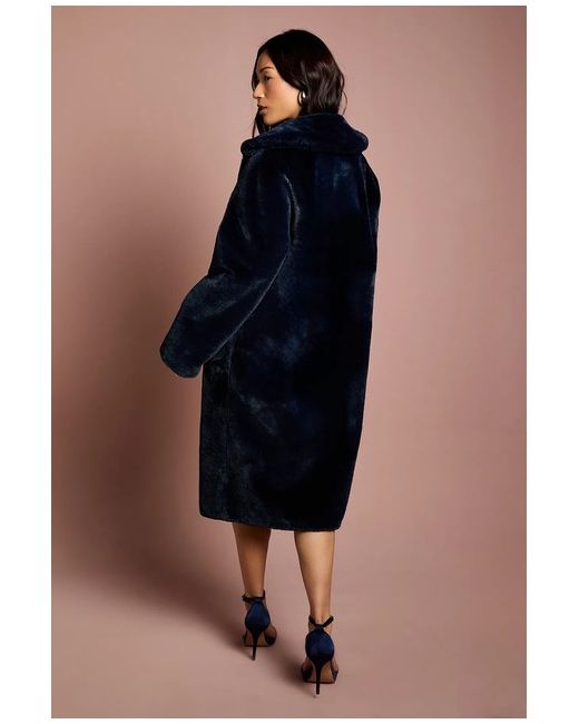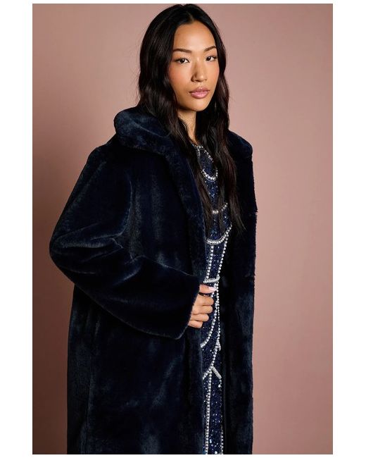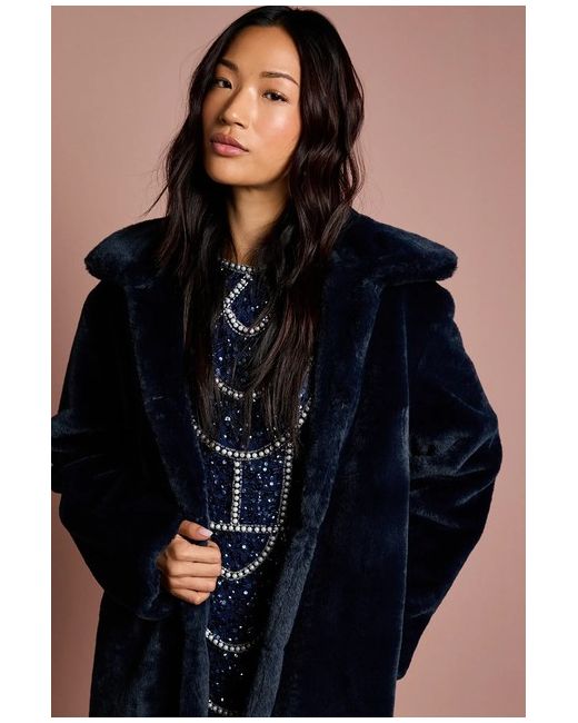 COAST Navy Faux Fur Longline Collared Coat.