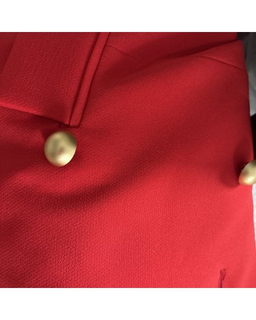 This Ladies Red Fitted Jacket is a stylish and on-trend piece made from a polyester elastane blend, perfect for a casual occasion. With a short length and a fitted style, it is designed to flatter the figure and is ideal for the spring season. The rich red colour adds a pop of colour to any outfit, while the polyester lining provides comfort and warmth. The jacket is in size XS, with a regular fit and is recommended to be dry cleaned only to maintain its quality. Perfect for those looking to make a fashion statement with a versatile and chic addition to their wardrobe. Bright red fitted stunning glamour jacket - button fell off but a spare one on the tag ❤️❤️❤️never used perfect
