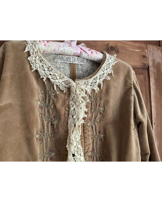 The Magnolia Pearl Jacket is a stylish and versatile addition to any woman's wardrobe. Made from high-quality cotton, this short jacket features a classic beige colour and a regular fit, perfect for everyday wear. With its basic jacket style and one-size design, this piece is both practical and on-trend, ideal for adding a touch of sophistication to any outfit,this jacket from Magnolia Pearl is a must-have for those looking for a timeless and beautifully crafted outerwear option.