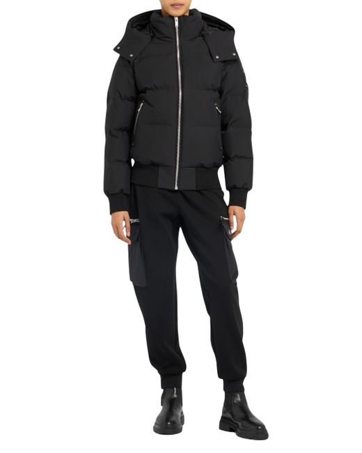 From the Cloud Collection. This cozy bomber-style jacket from Moose Knuckles features removable shearling trim along the hood. Zip-off hood Long sleeves, ribbed cuffs Front zip pockets Ribbed hem Front zip closure 100% polyester Trim: 100% shearling Fur type: dyed sheep shearling Fur origin: Spain Dry clean by fur specialist Imported SIZE & FIT About 26" from shoulder to hem Model measurements: 5'10" tall Model is wearing a US size Small ABOUT THE BRAND Moose Knuckles' luxe parkas are designed to withstand extreme temps. Founded in 2007, the Canadian outerwear brand melds function with fashion. The handcrafted, fur-trimmed jackets are designed to protect from wind and water, with down insulation for maximum warmth. Plus, the brand boasts cozy hats and gloves to finish your cold-weather look. Outerwear And Swimwear - Down > Moose Knuckles > Saks Fifth Avenue. Moose Knuckles. Color: Black. Size: Small.