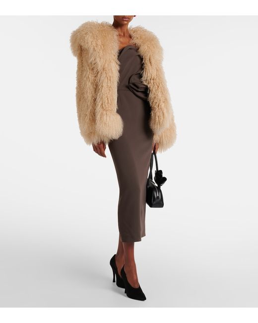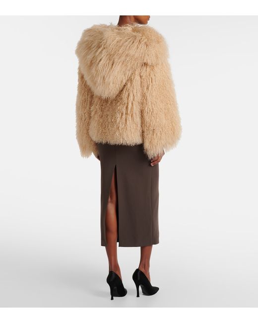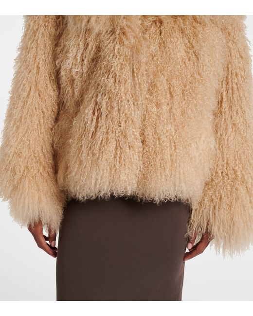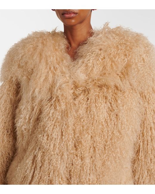 Material: 100% shearling. Care instructions: dry clean. Made in Poland. Designer color name: Light Brown. Item color: beige. Lining: 100% viscose. Contains non-textile parts of animal origin.