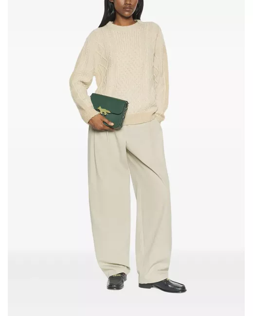 beige cable knit crew neck long sleeves ribbed hem ribbed cuffs