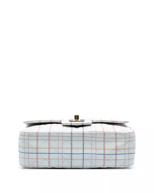quilted and printed calfskin body leather woven chain link shoulder strap front flap with a twist lock closure exterior back slip pocket interior zip and slip pockets.White.Serial Number: 29186426.Inclusions: authenticity card.Condition: GOOD. This previously owned and used item is in good condition with minimal signs of use. This may include fading of material or plating and scratches.Please refer to the photos on this product page for a detailed view of the item including any damages declared