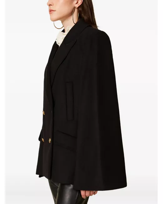 black wool blend cape design double-breasted gold-tone buttons flap pockets