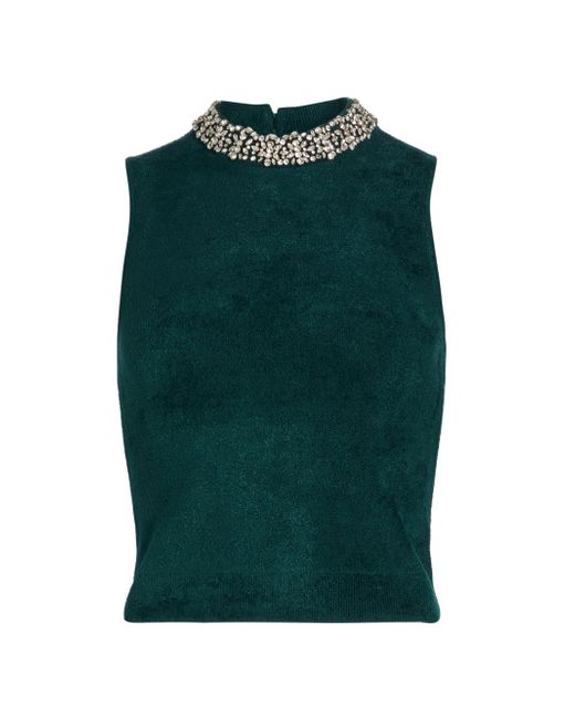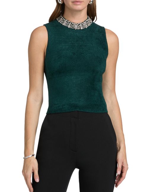 Sparkling rhinestone embellishments detail the halterneck of this Rema top from SIMKHAI. Halterneck Sleeveless Back keyhole closure 61% rayon/24% nylon/14% polyester/1% spandex Dry clean Imported SIZE & FIT This style is constructed in a stretch weave for a slim fit About 19" from shoulder to hem Bust: about 35" Model measurements: 5'10" tall Model is wearing a US size Small. Contemporary Sportswear - Workshop > Simkhai > Saks Fifth Avenue. SIMKHAI. Color: Emerald. Size: Medium.
