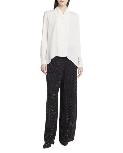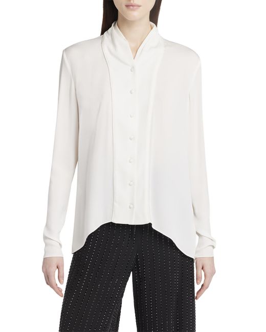 Made in Italy, this Giorgio Armani silk blouse is styled with a shawl collar and back pleats. Shawl collar Long sleeves Button-front closure 100% silk Dry clean Made in Italy SIZE & FIT Model measurements: 5'10" tall Model is wearing a US size 4 ABOUT THE BRAND Since launching his self-named fashion empire in 1975, Milanese designer Giorgio Armani has both revolutionized women's and men's fashion, and the fashion industry writ large. His now signature silhouettes forged new directions at the time, with more natural fits and neutral colors. To this day, the Armani name is synonymous with an effortless and approachable Italian aesthetic that can be found in its expertly tailored clothing, accessories and beauty collections. Advanced European - B30 Consignment > Giorgio Armani > Saks Fifth Avenue. Giorgio Armani. Color: White. Size: 10.
