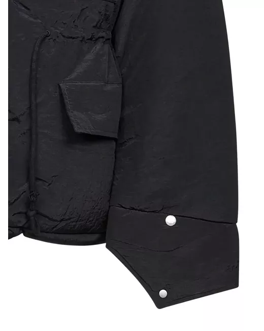 black high neck drawstring fastening waist flap pockets drawstring hem