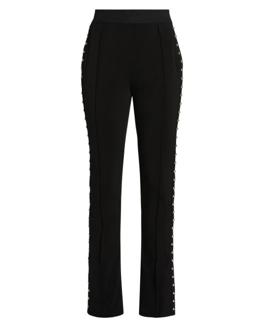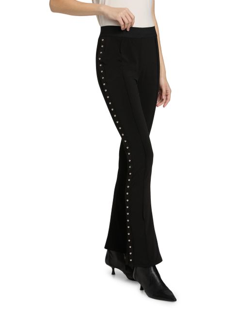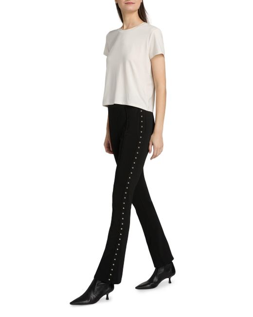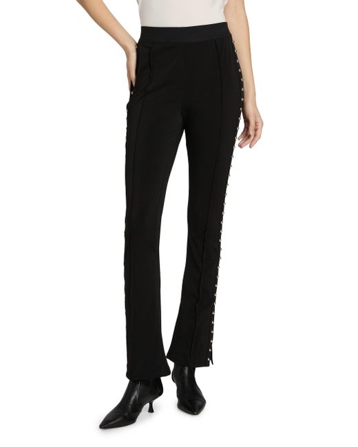 Adorned with silvertone studs along the side seams, the Percy pants from Cinq à Sept are cut for a comfortable bootcut silhouette. Elasticized waistband Pulls on 85% polyester/15% spandex Lining: 100% polyester Dry clean Imported SIZE & FIT This style is constructed in a stretch fabric for a tailored fit Rise, about 10.25" Inseam, about 30.75" Leg opening, about 16.5" Model measurements: 5'10" tall Model is wearing a US size Small ABOUT THE BRAND Inspired by the radiant, magical hours between 5 and 7 PM-which is what the label's French name translates to-founder Jane Siskin designs sophisticated, feminine pieces for both workweek and the weekend. The designer's silhouettes also play with volume and eye-catching trimmings-perfect for cocktails or a special night out. Contemporary Sportswear - Cinq A Sept > Cinq à Sept > Saks Fifth Avenue. Cinq à Sept. Color: Black. Size: XXS.