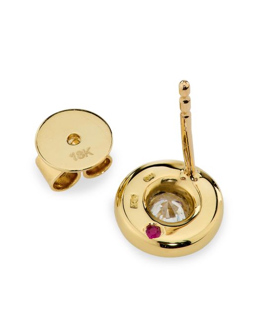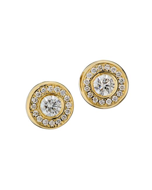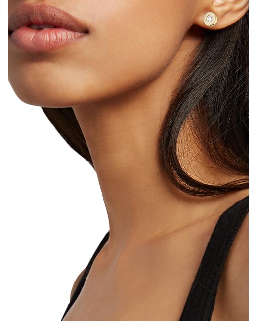 From the Tiny Treasures Collection. Roberto Coin's diamond earrings feature a sparkling halo of diamonds set in 18K white gold and finished with a signature hidden ruby. Diamonds, 0.56 tcw Ruby 18K white gold Post back Made in Italy SIZE About 0.5"W x 0.5"L ABOUT THE BRAND Jewelry designer Roberto Coin founded his eponymous line in 1996, with a strong emphasis on elegance and creative experimentation. Each piece is the result of a long creative process, taking inspiration from cultural influences and nature. Fine Jewelry - Roberto Coin Asset > Roberto Coin > Saks Fifth Avenue. Roberto Coin. Color: Yellow Gold.
