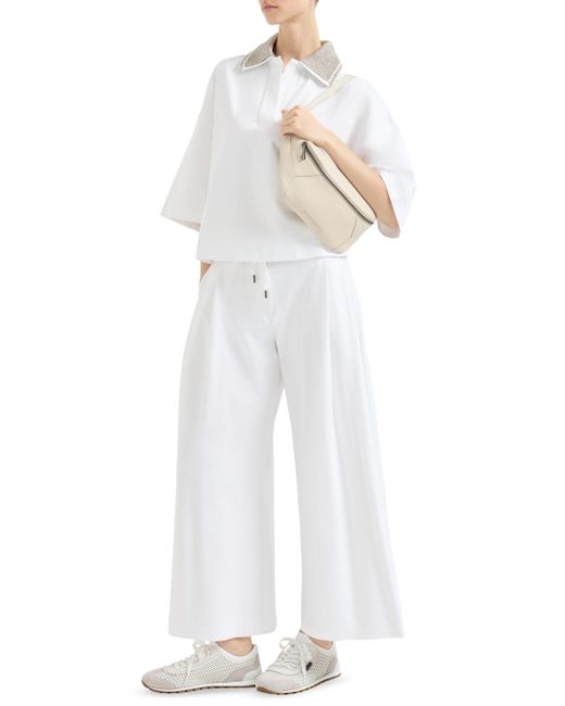 Couture interlock trousers. Button closure Elastic waistband with drawstring Vertical front pockets Double pleat Back welt pockets with button Plain hem Nickel-free monili decoration Hand wash only, do not bleach. Do not tumble dry, iron at low temperature 65% cotton, 29% nylon, 6% elastane Made in Italy. Lsd Rtw - Brunello Cucinelli Rtw > Brunello Cucinelli > Saks Fifth Avenue. Brunello Cucinelli. Color: White. Size: XXXL.