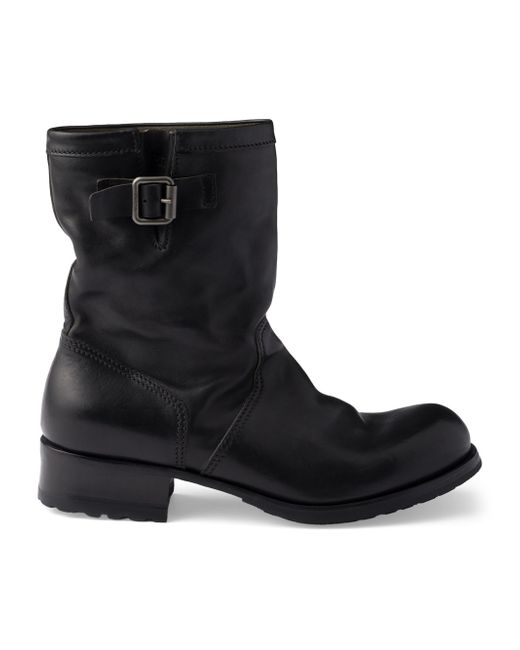 Unlined bootleg with buckle, height 22 cm Leather sole with light rubber lug tread Sole height: 40 mm / 1.5'' Leather insole Imported 100% Calf Leather. Lsd Rtw - Prada Rtw > Prada > Saks Fifth Avenue. Prada. Color: Black. Size: 6.