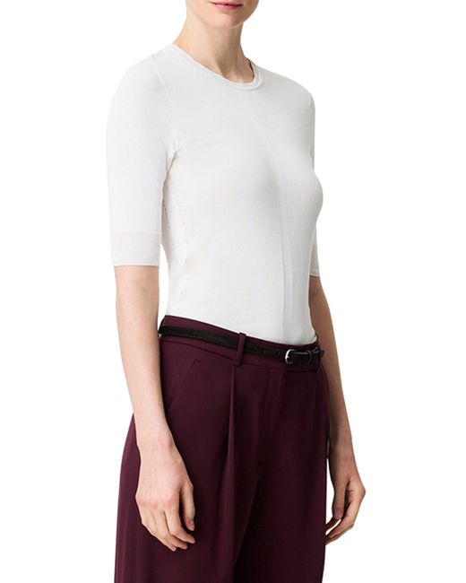 Designed for a close fit, this knit top features a ribbed neckline and elbow length cuffs. This viscose is crafted using wood pulp from FSC-Certified producers committed to the protection of ancient and endangered forests. Made with responsibly sourced wood 70% Viscose 30% Cotton Made in Italy Ribbed neckline and cuffs Elbow length sleeves Dry clean sparingly SIZE Runs true to size Model is 5'10'' and wears a size S. Lsd Rtw - Womens Rtw Lsd Mp > Another Tomorrow > Saks Fifth Avenue. Another Tomorrow. Color: Off White. Size: XS.
