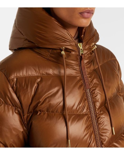 Material: 100% nylon. Care instructions: machine wash at 30 degrees. Made in China. Designer color name: Cocoa Dust. Item color: brown. Lining: 100% polyamide. Filling: 90% down, 10% feathers. Contains non-textile parts of animal origin. Closure: two-way zipped front. Pockets: snap-buttoned pockets, internal pocket. Drawstring hood.