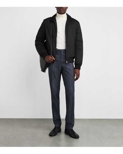 Refined aesthetics and premium craftsmanship may be hallmarks of Canali designs, but practicality is never left by the wayside. This bomber jacket is a case in point, with technical fabric that offers protection from wind and rain, as well as down filling that insulates without weight.
