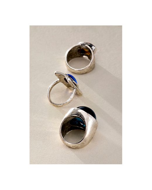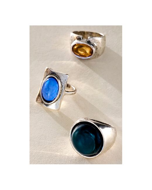 Just as versatile as it is vintage-inspired, this super cool ring set features three chunky rings in a distressed metal fabrication with colorful stone at center for the ideal finishing touch. * Set of 3 * Chunky style * Mixed shapes and stone Hanson Ring Set at Free People in Silver &