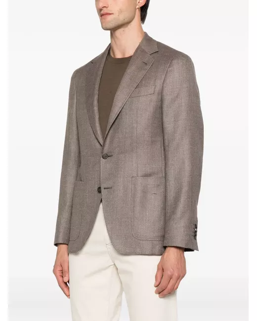 brown herringbone weave patch pockets two-button fastening notched lapel long sleeves