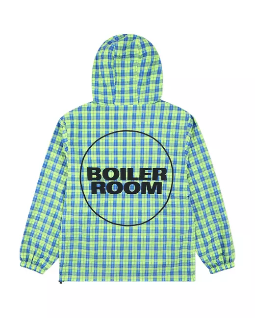 blue and green check pattern hooded zip fastening elasticated cuffs logo detail
