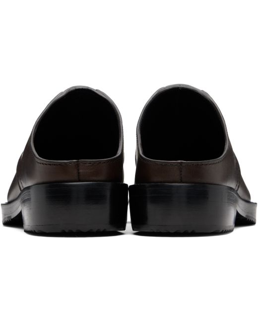 Buffed calfskin slip-on clogs. · Topstitching at welt · Logo-embossed padded footbed · Stacked leather heel · Leather sole with rubber injections Supplier color: Dark brown