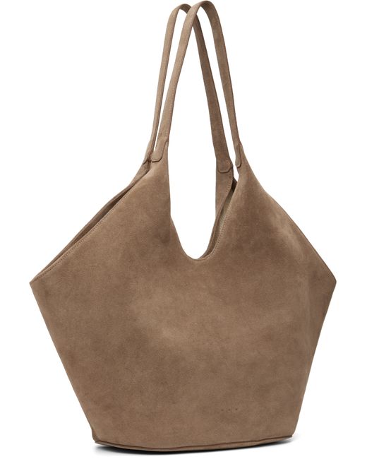 Calfskin suede tote. · Burnished edges throughout · Twin shoulder straps · Logo embossed at face · Magnetic closure · Patch pocket at interior · Grosgrain lining · H9.5 x W18 x D6.75 Supplier color: Suede Date
