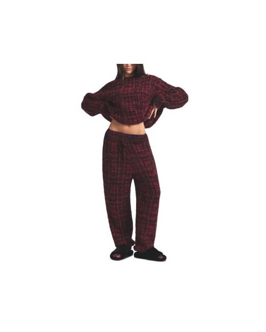 Skims Cozy Oversized Joggers.Color:Merlot Navy Plaid.Size:L/XL.Material:76% polyester/24% nylon.Pants.