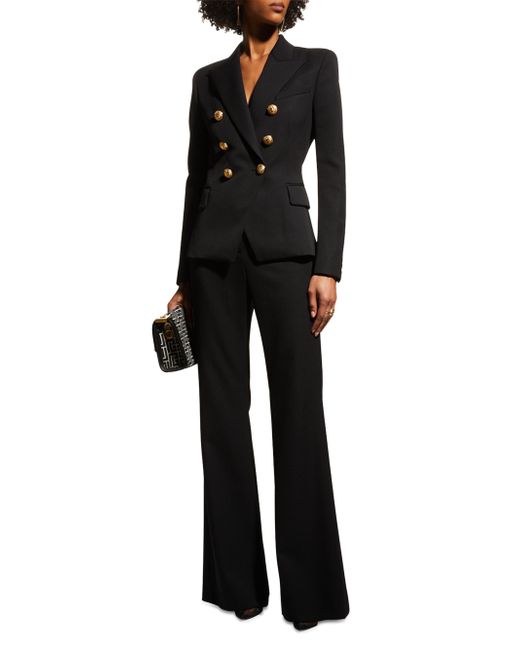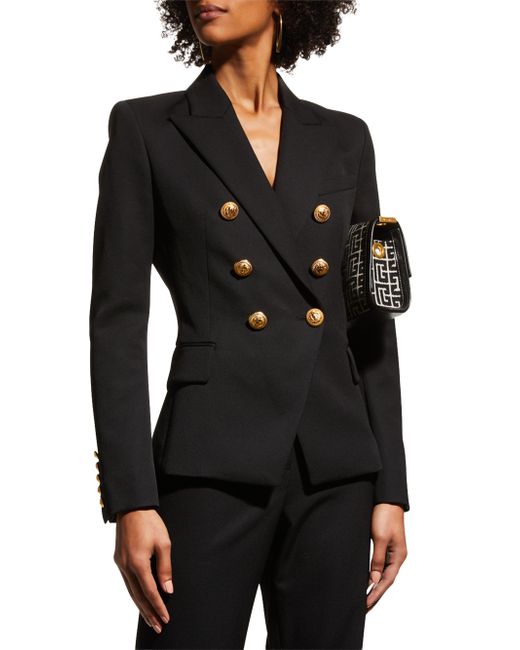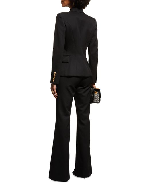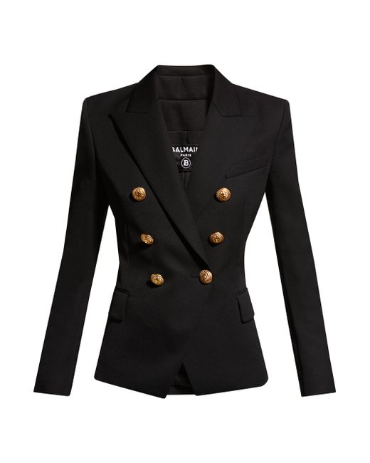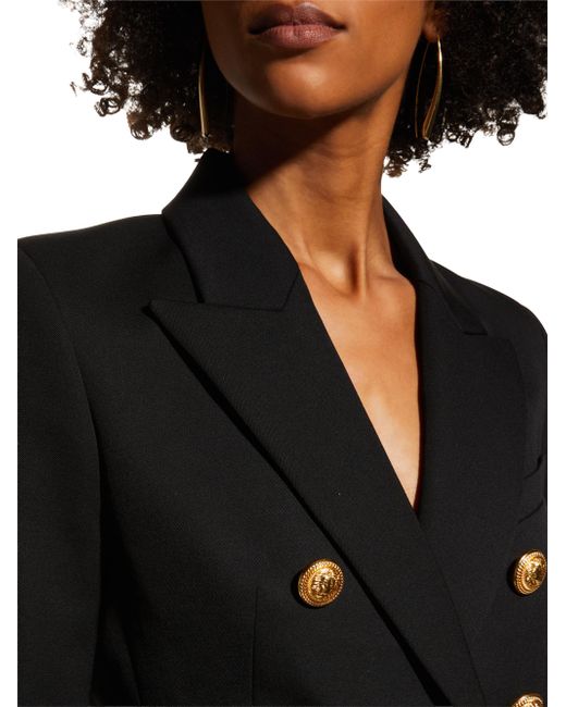 Crafted of wool, this jacket from Balmain is cut in tailored silhouette and detailed with goldtone logo buttons. Notched lapels Structured shoulders Long sleeves, button cuffs Chest welt pocket Side flap pockets Button-front closure 100% wool Dry clean Made in Portugal SIZE & FIT Model measurements: 5'10" tall Model is wearing a US size 4. Advanced Designer - Balmain > Balmain > Saks Fifth Avenue. Balmain. Color: Noir. Size: 2.