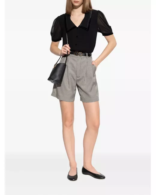 black velvet trim button fastening short sleeves sheer sleeves point collar