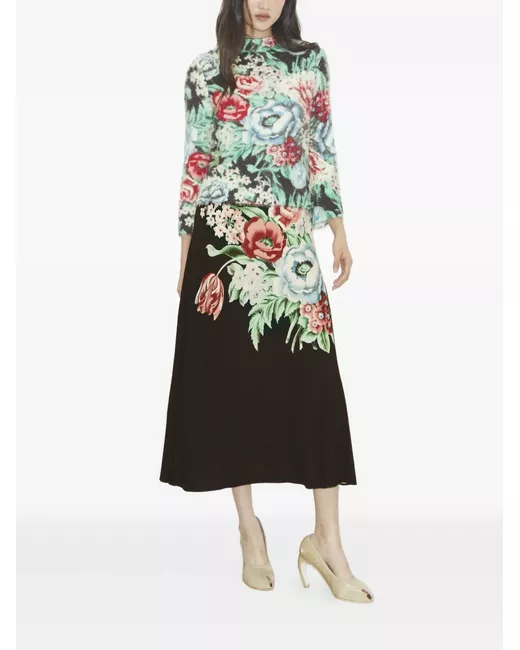 green floral print mock neck long sleeves ribbed hem ribbed cuffs