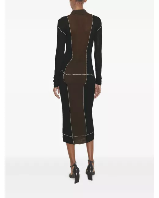 black colour-block design button fastening collared long sleeves white topstitching