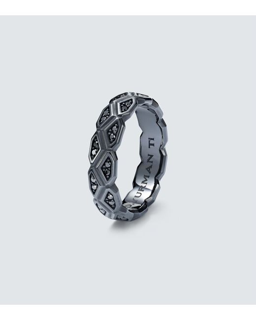 Material: titanium. Made in Taiwan. Item color: black. Stone I: black diamonds, 0.572ctw, round-cut, pavé setting.