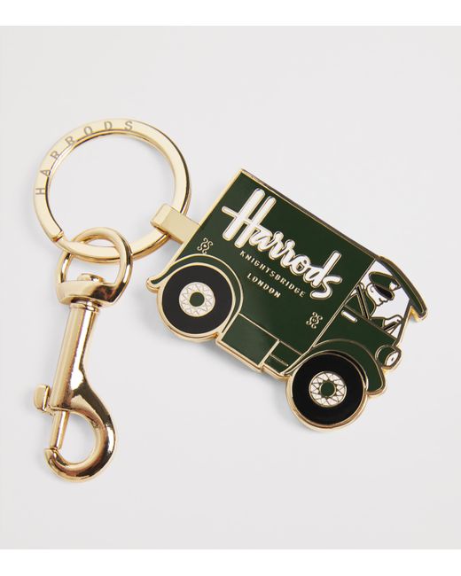 Harrods vans were once a familiar sight on London's Brompton Road, delivering luxurious treats to shoppers across the area. Now, they're immortalised as Harrods enamel keyrings, complete with drivers dressed in the pageantry of the original delivery men.