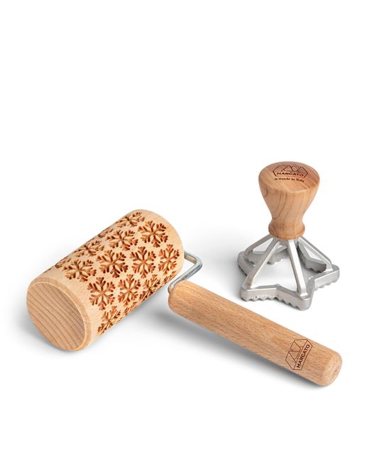 Whether baking for Santa or family gatherings, this Marcato cookie set provides you with the tools to showcase your culinary skills. Use the included recipe book to make the dough, then roll out with the wooden pin - watch as the seasonal pattern transfers to the surface - then firmly press in the cutter to create your batch.