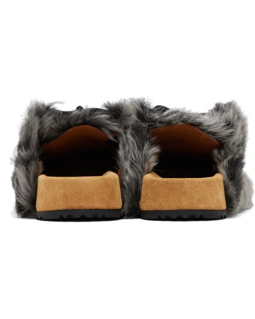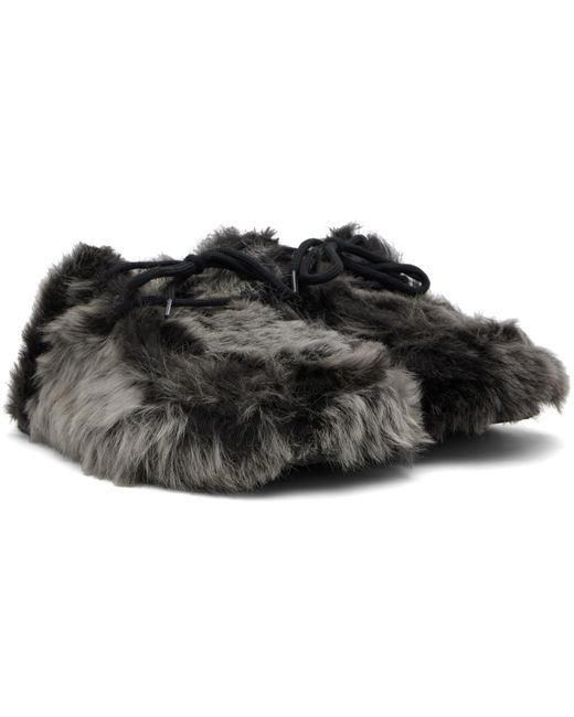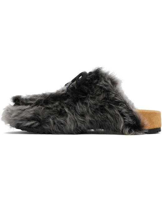 Hair-on leather slip-on clogs. · Moc-toe · Lace-up closure · Logo patch at molded suede footbed · Buffed leather lining · Treaded rubber sole Supplier color: Dark grey