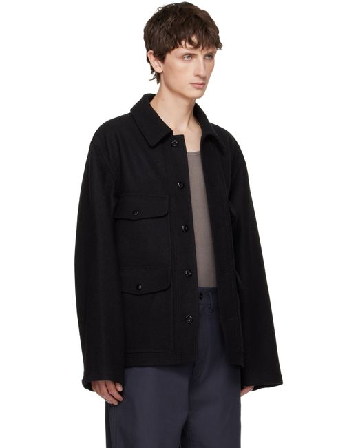 Wool melton jacket. · Spread collar · Button closure · Flap pockets at chest · Seam pockets at waist · Buttoned barrel cuffs · Patch pockets at interior Supplier color: Black
