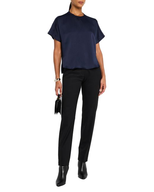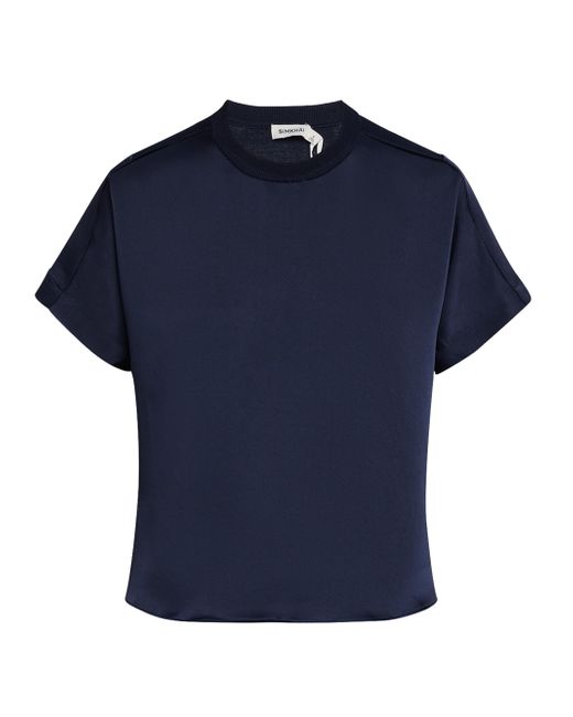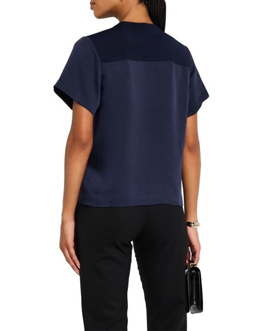 Pairing jersey and satin, SIMKHAI's Addy T-shirt features a boxy crewneck silhouette. Crewneck Short sleeves Pulls over 89% acetate/11% polyethylene Contrast: 100% rayon Dry clean Imported SIZE & FIT About 23" from shoulder to hem Model measurements: 5'10" tall Model is wearing a US size Small. Contemporary Sportswear - Workshop > Simkhai > Saks Fifth Avenue. SIMKHAI. Color: Dark Blue. Size: XL.