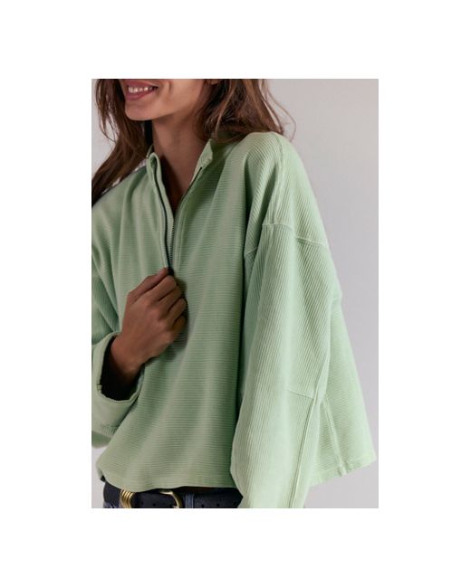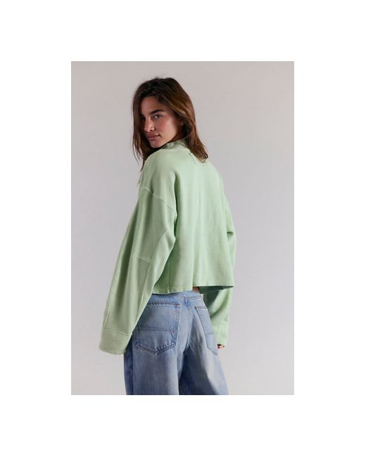 Comfort is key with this effortless pullover from We The Free, featuring a slightly cropped, boxy design, soft cotton fabrication, and a classic quarter-zip silhouette for a layer you'll reach for again and again. * Dropped shoulders * Long sleeves * Stand collar * Front zipper closure We The Free Celeste Quarter Zip at Free People in Alpine Dew, Size: XS