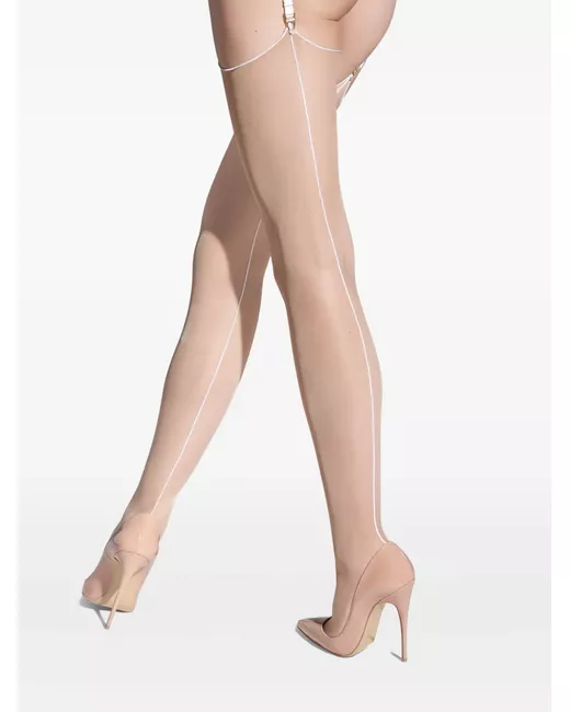 almond beige/white stretch-design contrasting trim knee-length Be sure before opening, as socks and hosiery can only be returned in their original, unopened packaging.